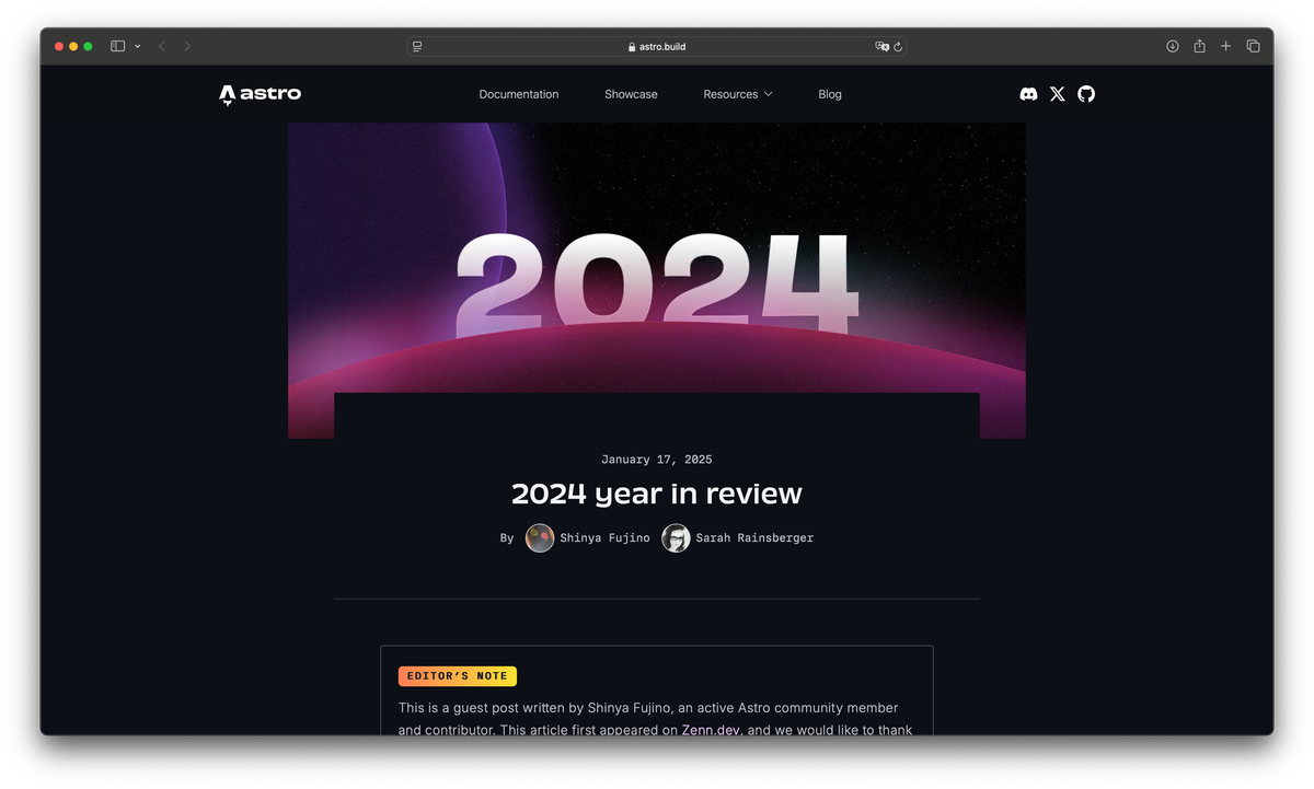 L'année 2024 a consolidé la position d'Astro comme un acteur majeur dans le développement web, grâce à des innovations techniques et une communauté dynamique. En 2025, l'accent sera mis sur l'amélioration des performances, l'enrichissement des fonctionnalités et le renforcement des liens communautaires. L'équipe développera également de nouvelles intégrations avec des outils de design et d'analyse, ouvrant la voie à des possibilités encore plus vastes.