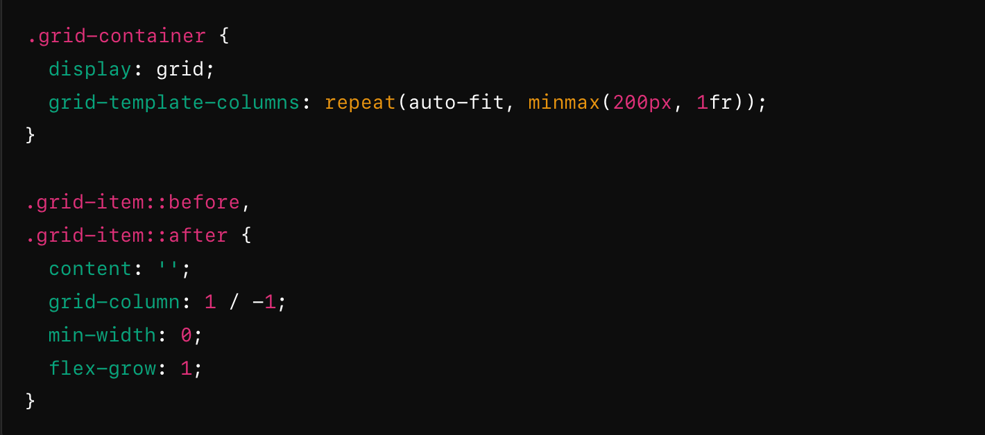 ::beforeand::afterpseudo-elements to grid elements to create flexible spaces. - Apply