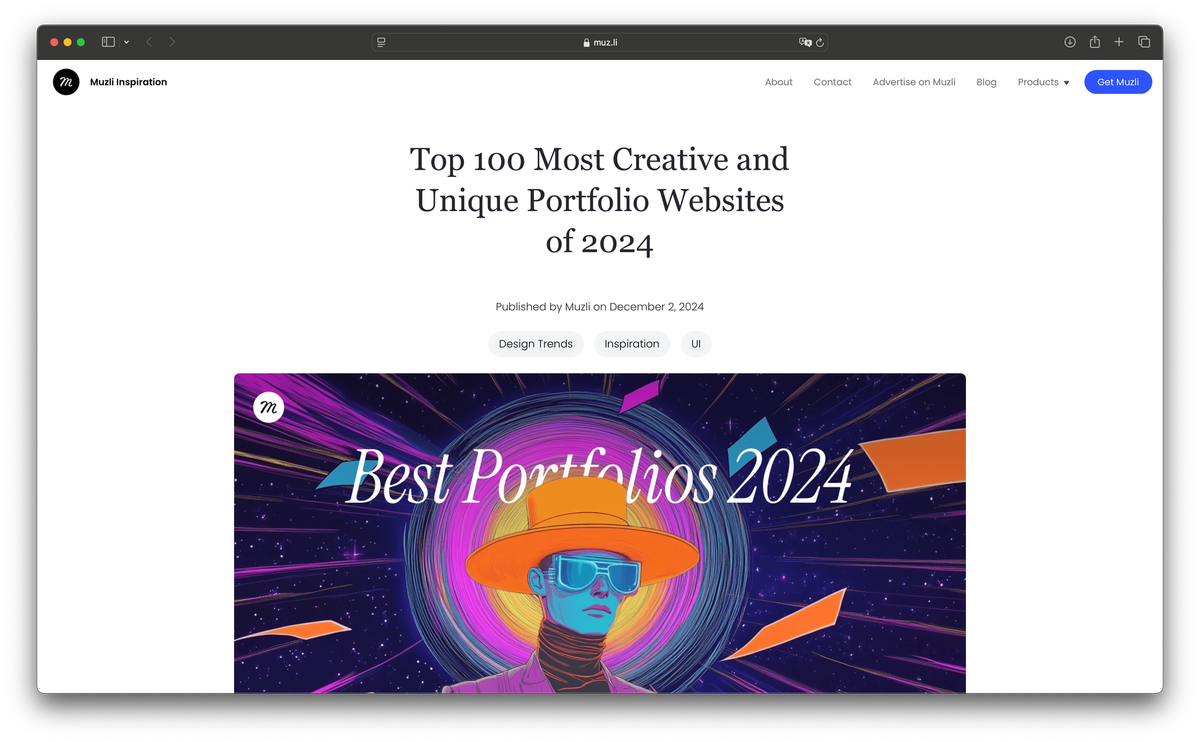 Découvrez les 100 portfolios les plus créatifs de 2024 sur Muzli. Inspirez-vous des meilleures tendances en design, animation et interactivité pour transformer votre portfolio. Rejoignez notre blog pour explorer des astuces et idées pour créer un site qui impressionne et attire des clients !